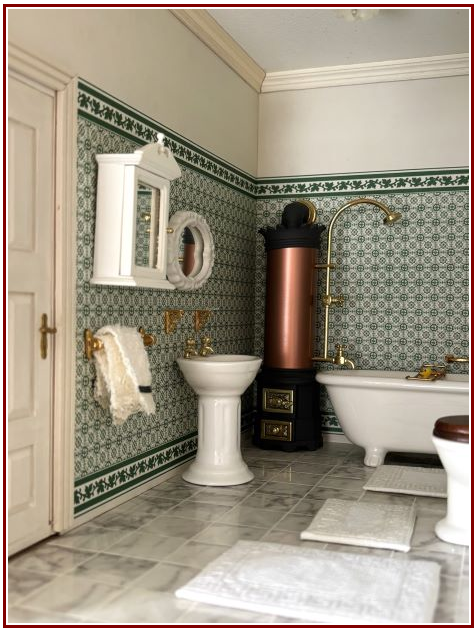 The story of this dollhouse takes place in Copenhagen in the late 1890s. At that time, only the wealthiest families, upscale apartments, and newer buildings in the city had indoor toilets.