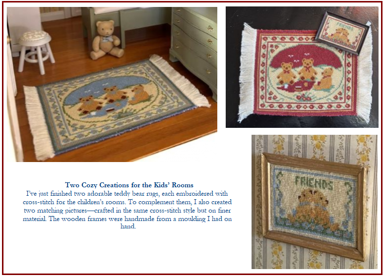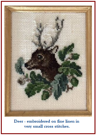While on the train I take advantage of this 'me-time' listening to audio books and do embroidery in miniature.