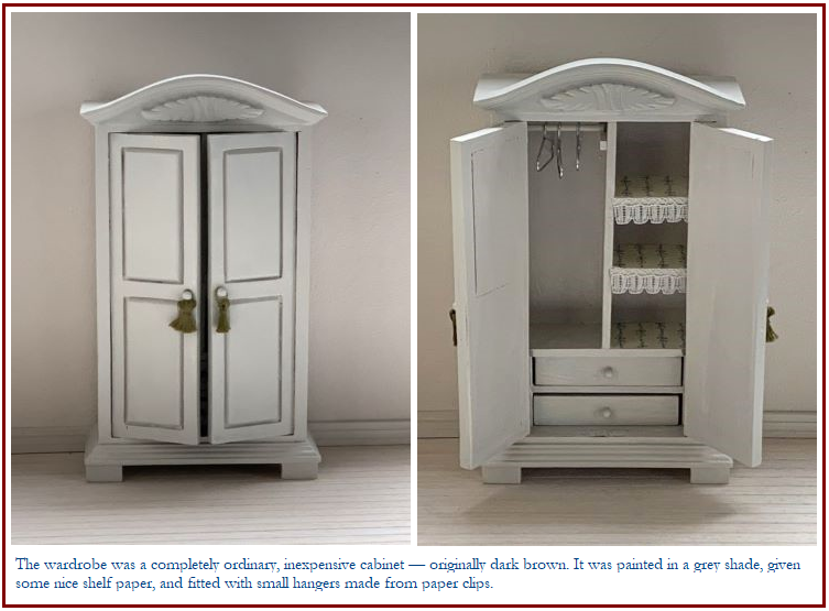 A single bed, sits beneath a shelf where porcelain dolls rest quietly, watching over the room. On the bed, a plush bunny sits. Nearby, a teddy bear waits patiently on the polished wooden floor, its presence reassuring and familiar.